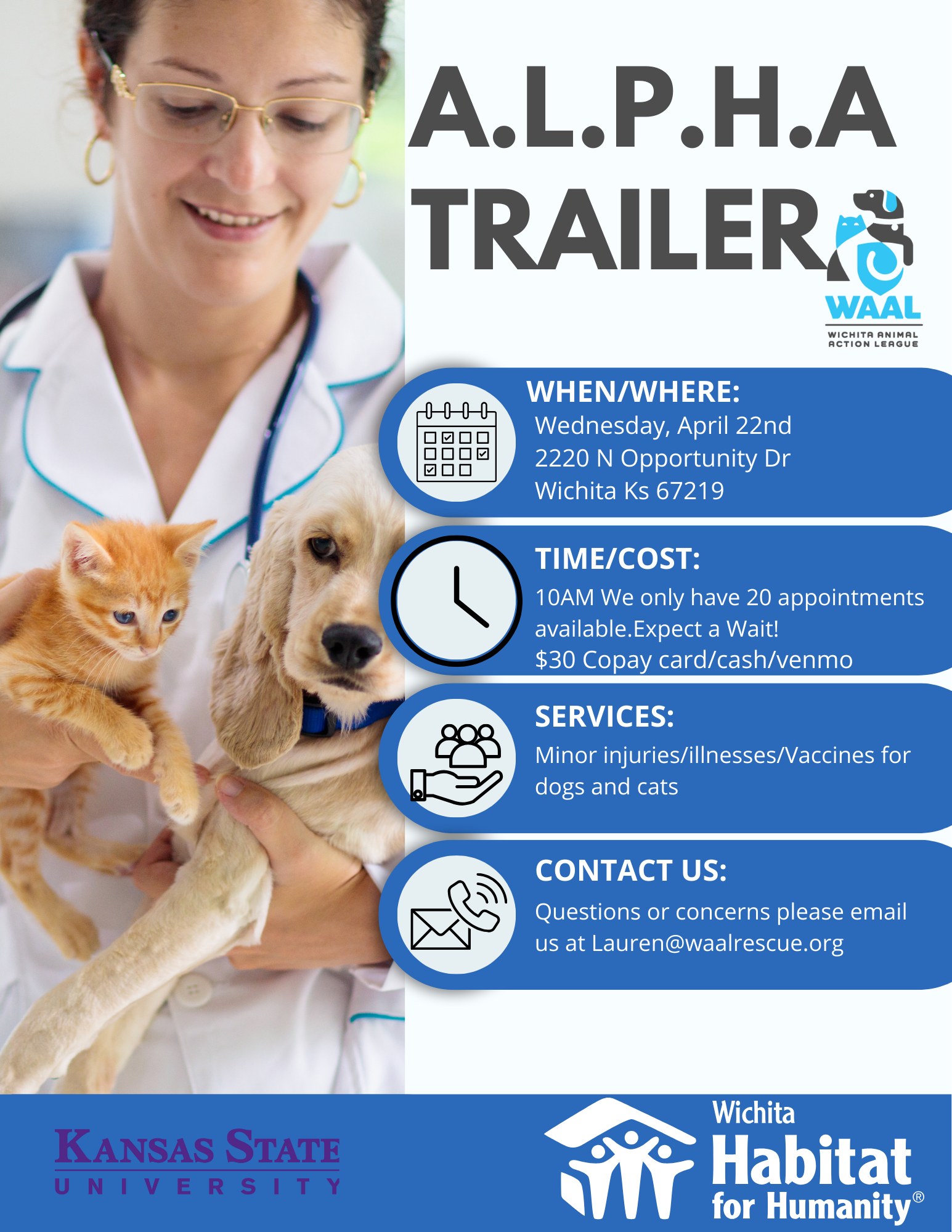 ALPHA clinics are urgent care type clinics designed for low-income families who can't afford services elsewhere. Both dogs and cats are welcome. This is not a surgery or spay/neuter clinic.