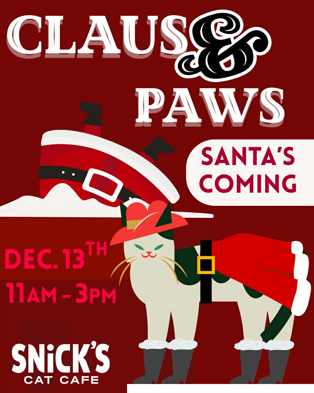 We are helping advertise for our friends at Snicks! Please give them a call at 316-444-1034 with any questions! *Free pictures with Santa!*BOGO hot chocolate!*Free candy canes!*Free holiday craft project for the kiddos!*Hang out with a bunch of cool cats! (with paid entry fee and reservation at https://www.snickscatcafe.com/)- you can also have your photo taken with […] |